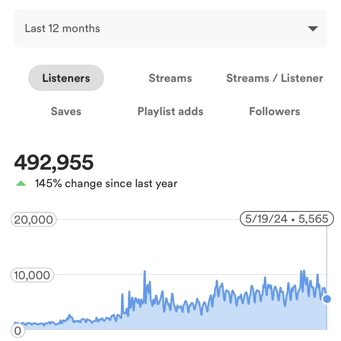 This Artist was already at the point where they were getting hundreds of thousands of streams per year. We were able to push their new single releases further and get them to over 2.6 million streams this past year!